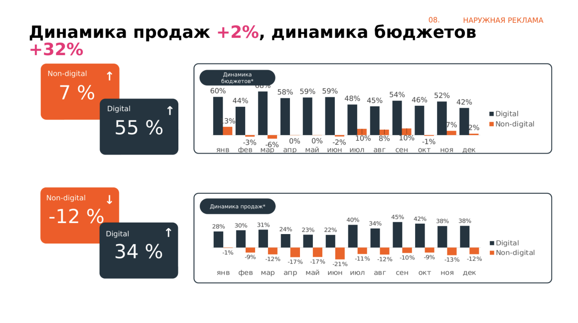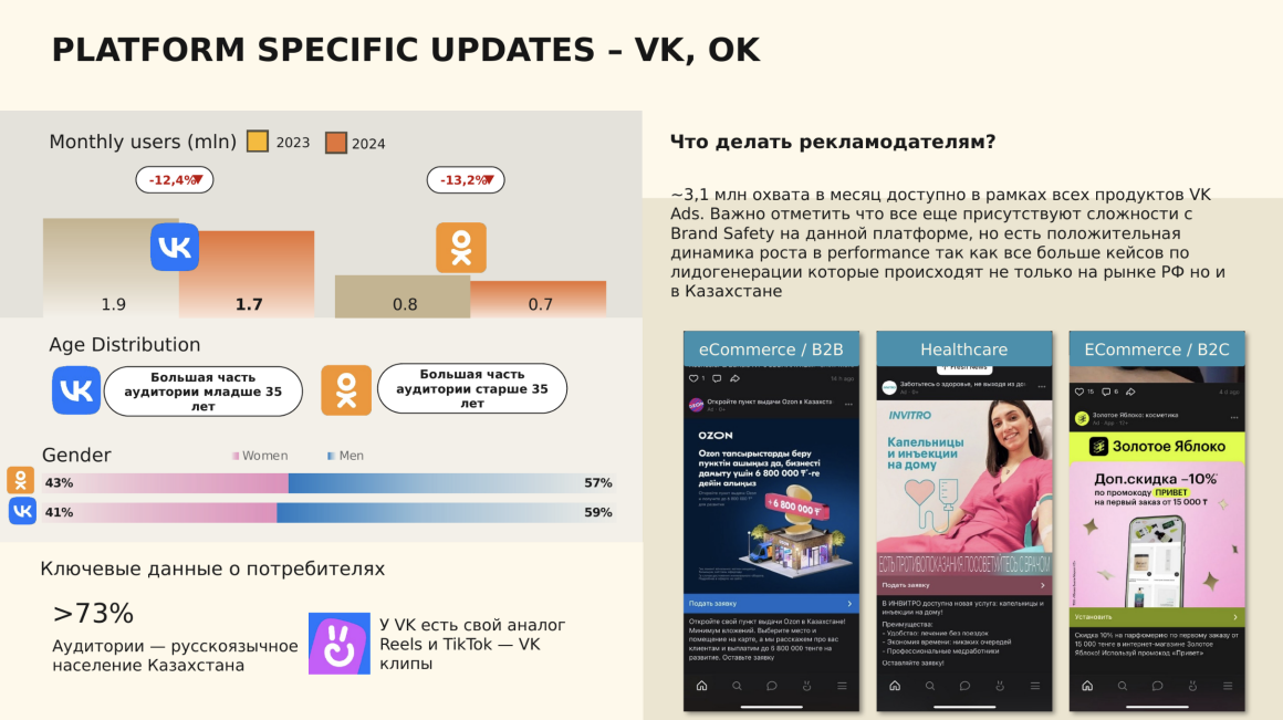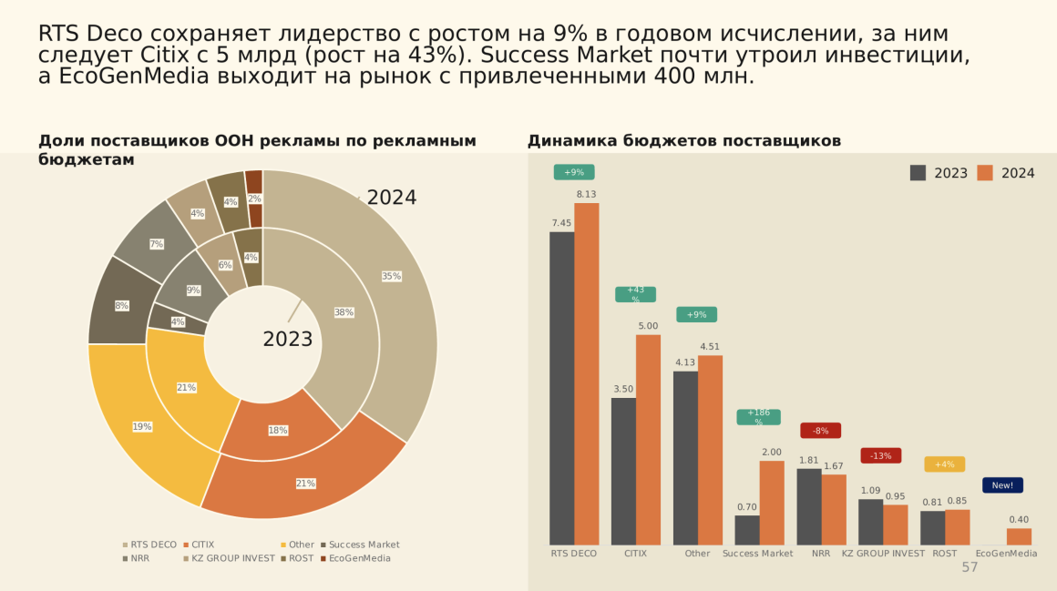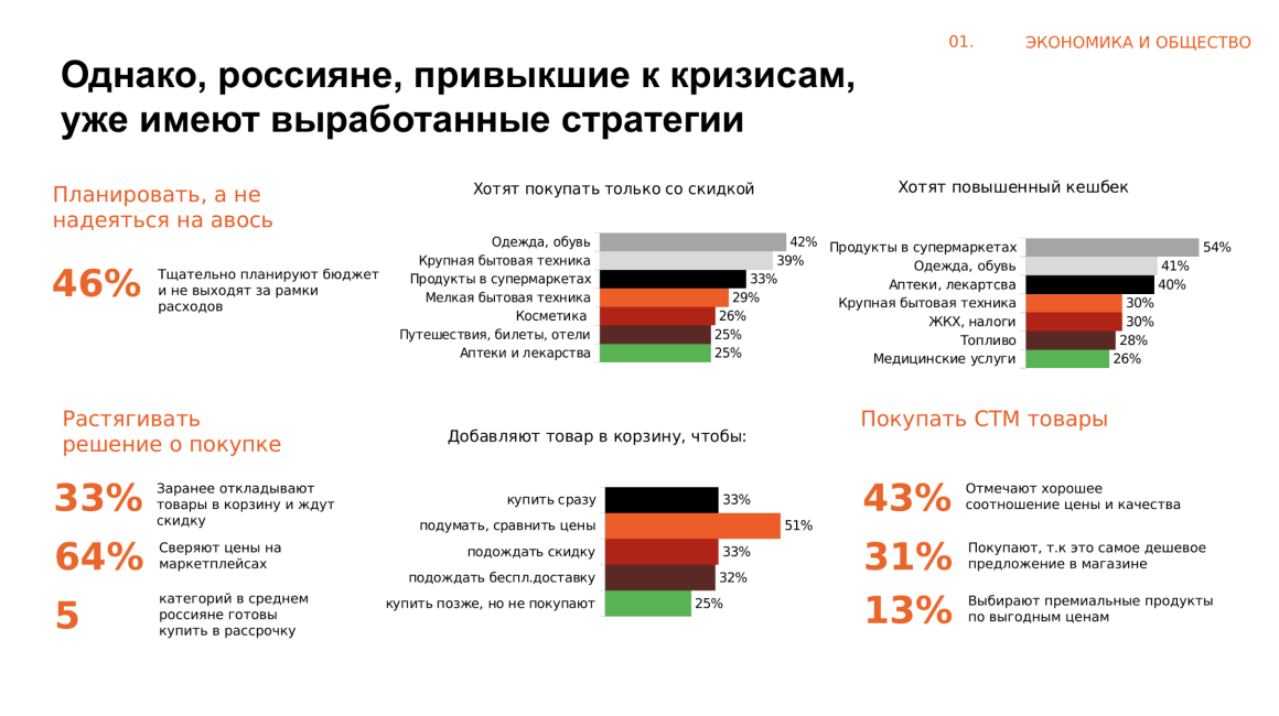 Формат, глубина аналитики и структура презентации подбираются индивидуально: под внутренние задачи, клиентские встречи, стратегические обсуждения или презентацию рынков и брендов.